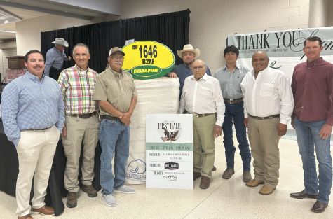 Flores Farms Joint Venture in Brownsville, TX, delivered the first harvested bale to Willamar Cotton and Grain on June 24 for processing. The 2,850-pound module was taken from a field planted by Teofilo Flores, Jr., on Feb. 10 to Deltapine variety DP 1646 B2XF. Michael Flores of Flores and Son Farms in Brownsville harvested the field.