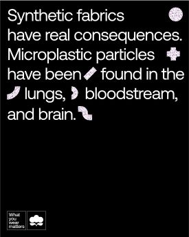 • Promoting Natural Fibers. Showcasing the benefits of choosing cotton (which represents 20% of global fiber production) and other plant-based fibers as a simple, natural alternative that doesn’t contribute to microplastic pollution.